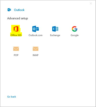 Step 3) At the next dialog box select “Office 365”